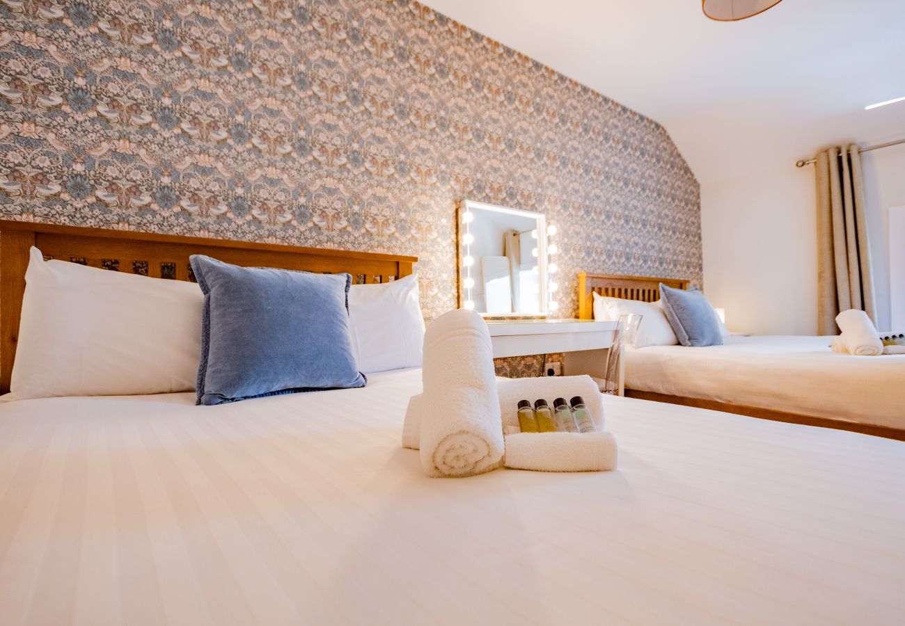 The property has an open living/dining/kitchen space that leads to 2 bedrooms just off it. (3 x 4ft6in bed). Carefully decorated, specifically for short term guests and corporate, it provides all the amenities you'll need.