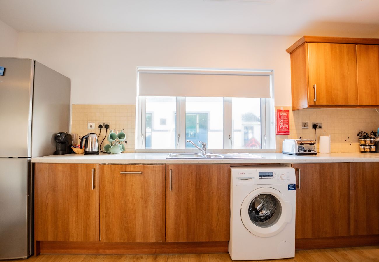 Natural light floods the kitchen through two bright windows, creating a cheerful and inviting atmosphere. Start your day with a freshly brewed cup of coffee from the Lavazza Coffee Machine as you plan your Galway adventures or enjoy a leisurely breakfast before heading out to explore the city.