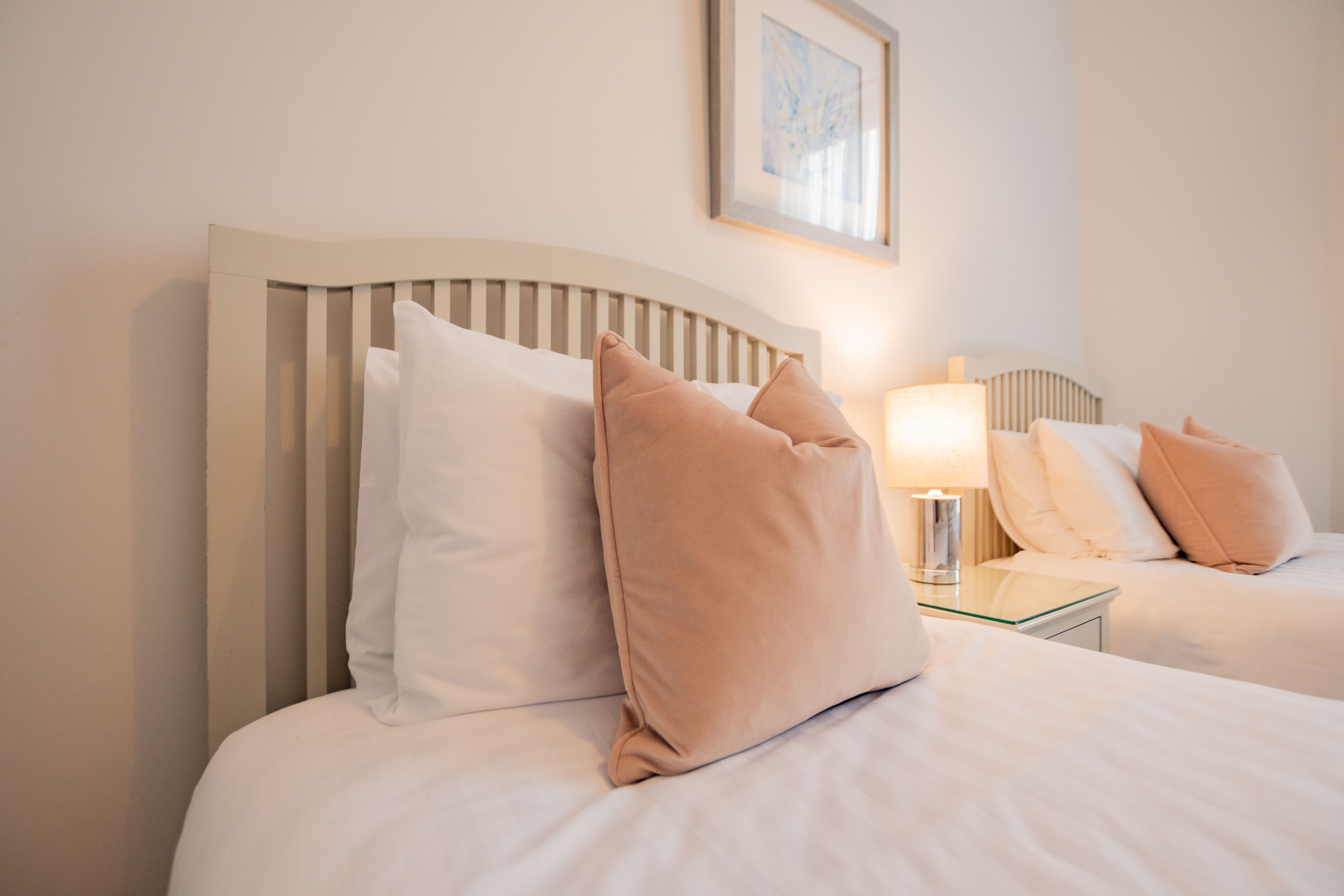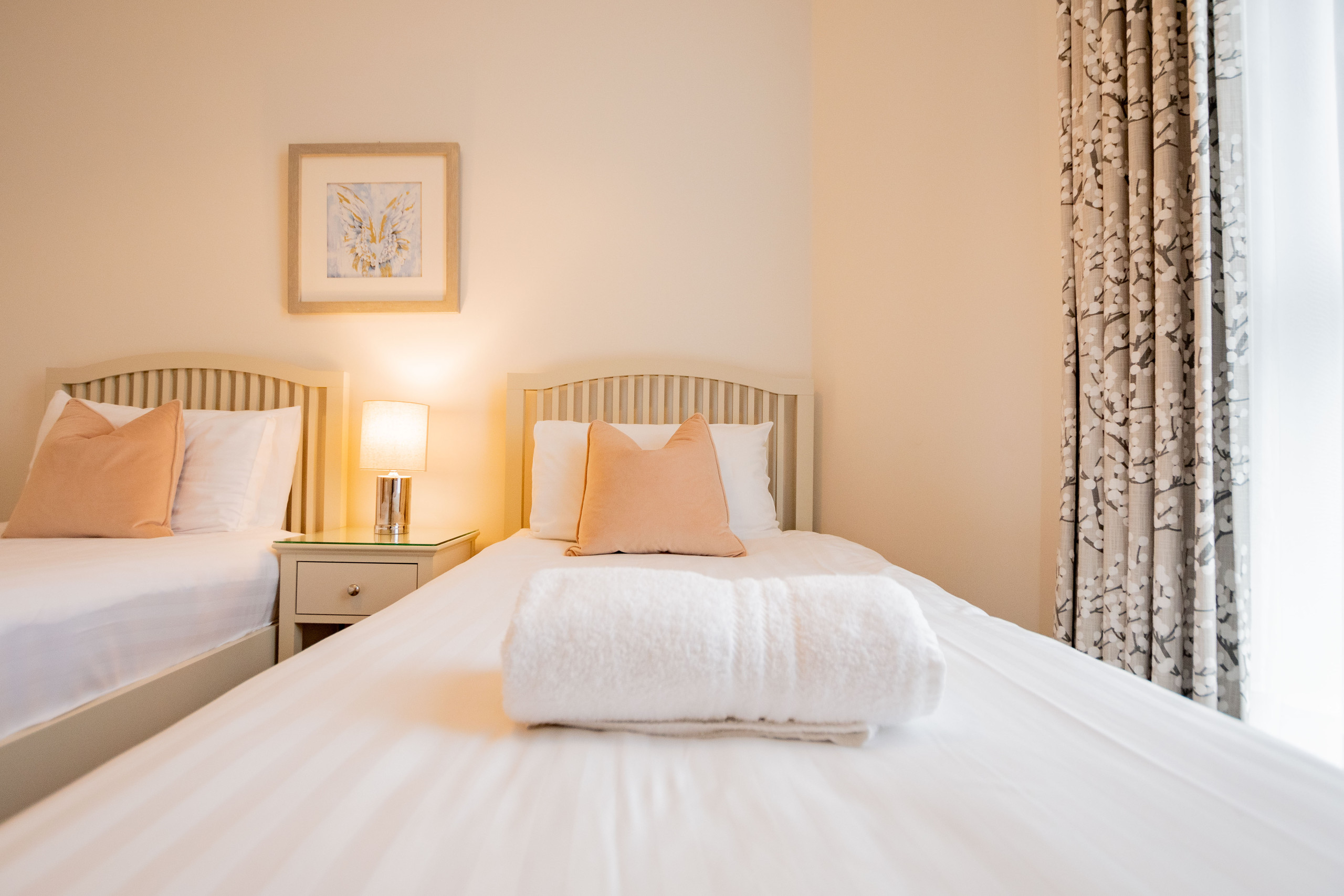 The second bedroom is a twin room with two single beds.