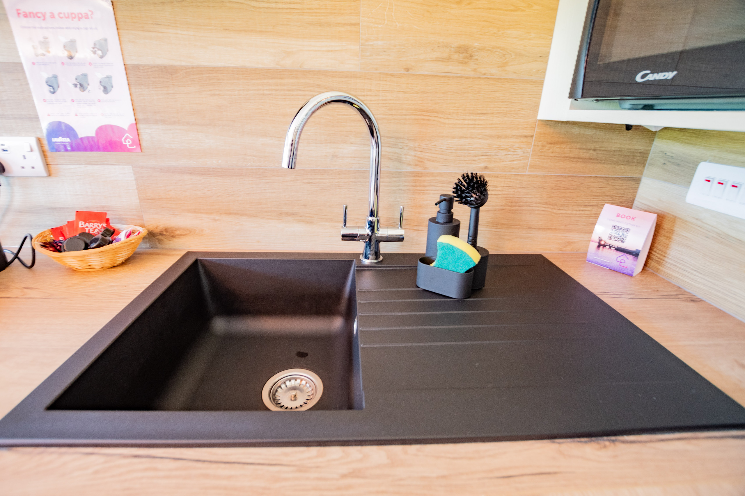 Natural light floods the kitchen through two bright windows, creating a cheerful and inviting atmosphere. Start your day with a freshly brewed cup of coffee from the Lavazza Coffee Machine as you plan your Galway adventures or enjoy a leisurely breakfast before heading out to explore the city.