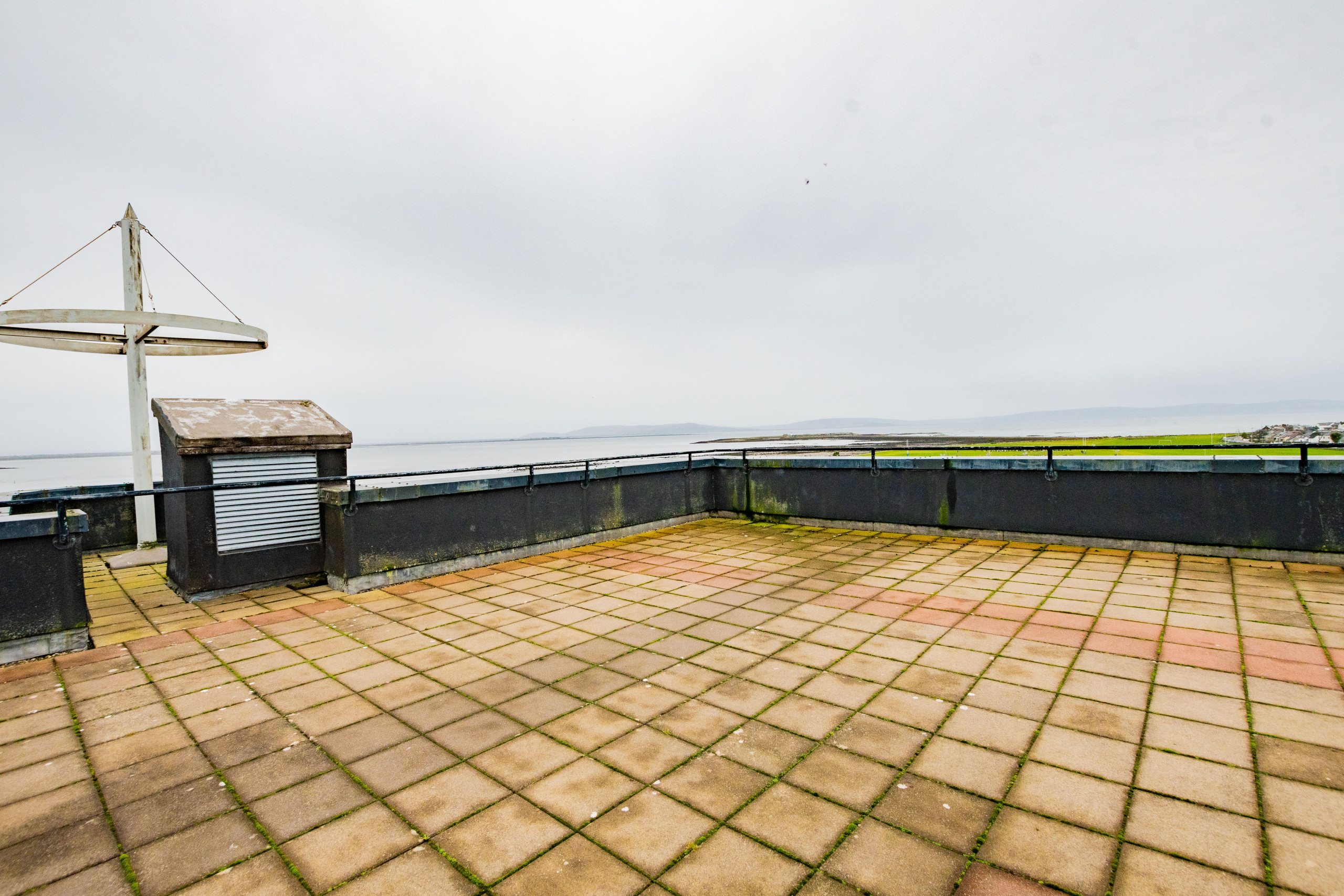 Upstairs is the third bedroom which also has a king size bed (5x6ft) with luxury mattress and mirror slide robe wardrobes. Opposite this bedroom is a third bathroom with walk in shower, wc, and sink. From the hallway you can access the private rooftop patio and take in all the views of Galway city and harbour, Aran Islands, and Salthill in the distance... a truly beautiful sight.